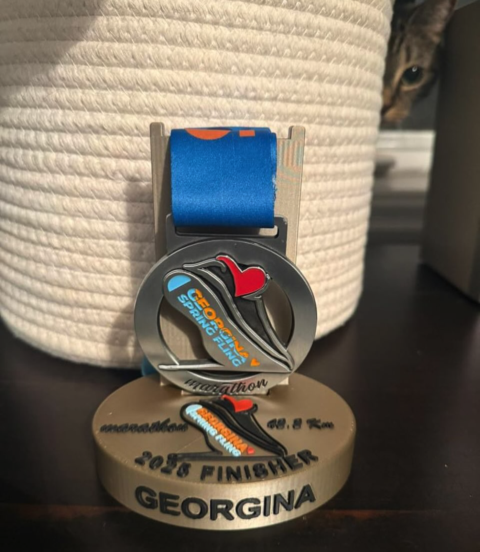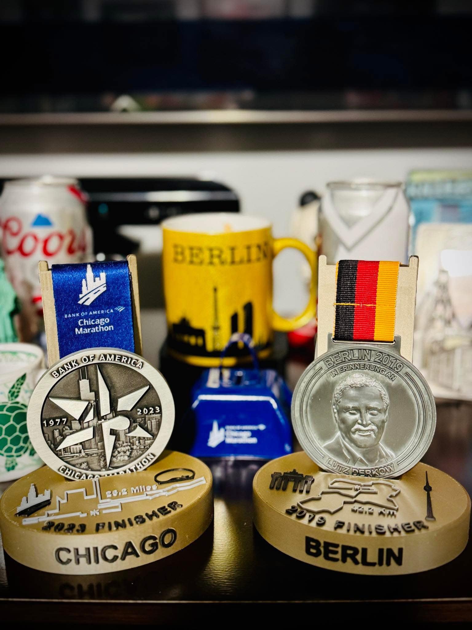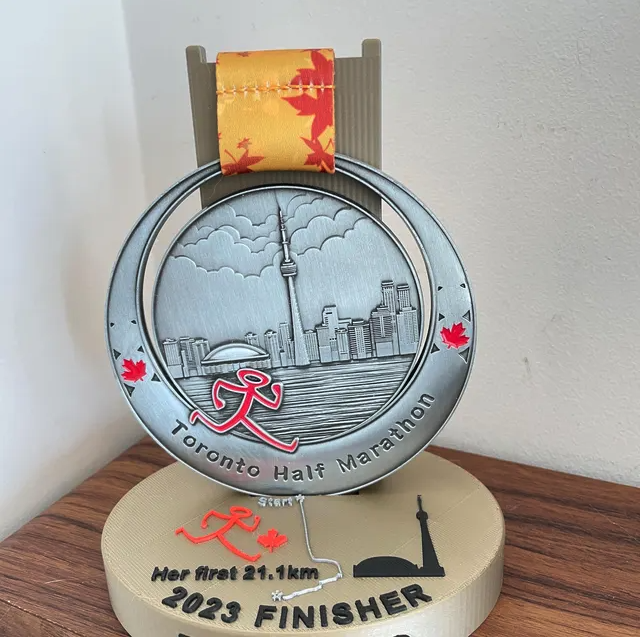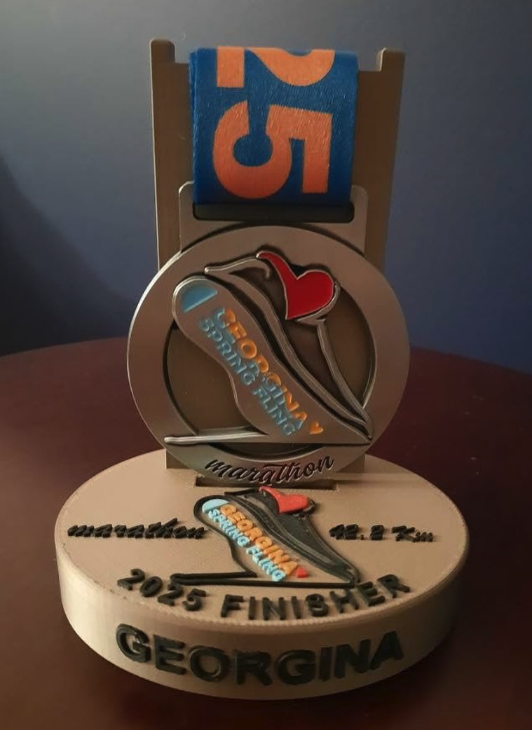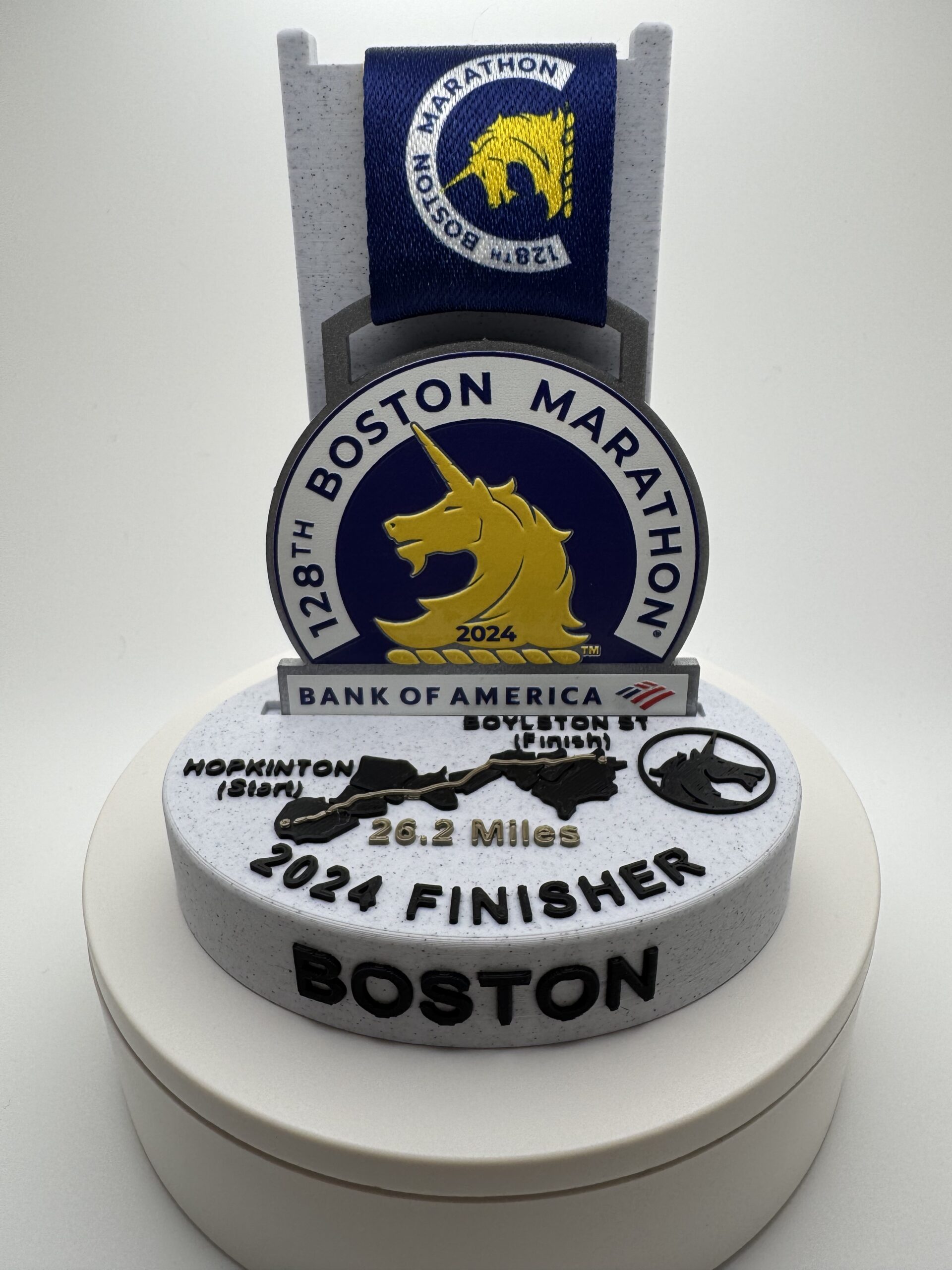This custom-designed medal display turned out absolutely perfect and is the ideal way to showcase my Air Force Marathon medal. The quality of the 3D print is excellent, sturdy, well balanced, and detailed, and it holds the medal securely while making it the centerpiece it deserves to be…. I will treasure this for years to come!”